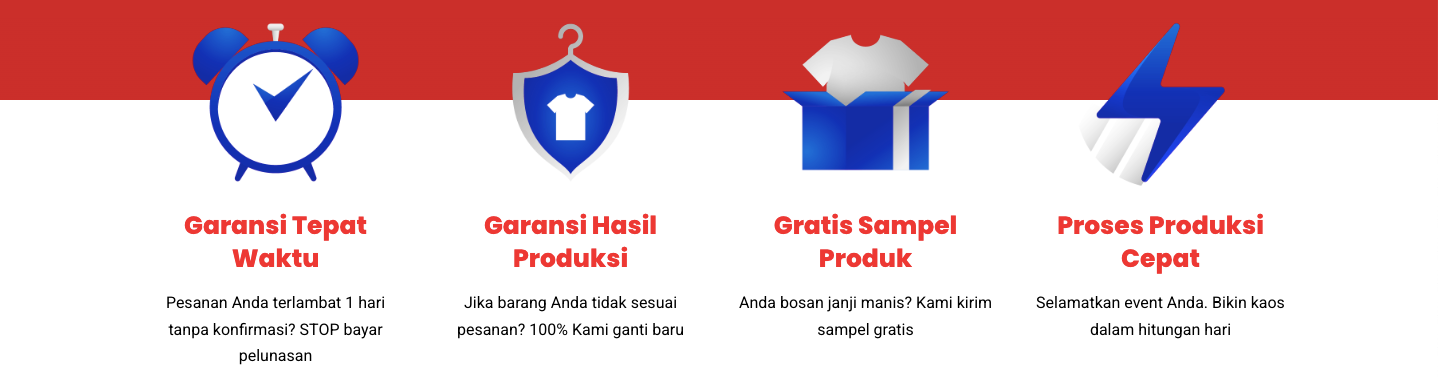 Jasa konveksi dengan mengedepankan kualitas diimbangi kecepatan proses. Tersedia berbagai pilihan bahan dan desain yang disesuaikan dengan budget Anda.